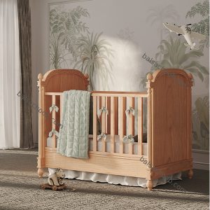 تخت خواب نوزادی روکو: هنر منبت کاری روی چوب راش گرجستانی و ظرافت لمسه دوزی با پارچههای مرغوب ترکی، تخت نوزادی روکو را به یک اثر هنری تبدیل کرده است. این تخت خواب با طراحی بینظیر خود، زیبایی راحتی و کیفیت را به طور همزمان به اتاق نوزاد شما هدیه میدهد.