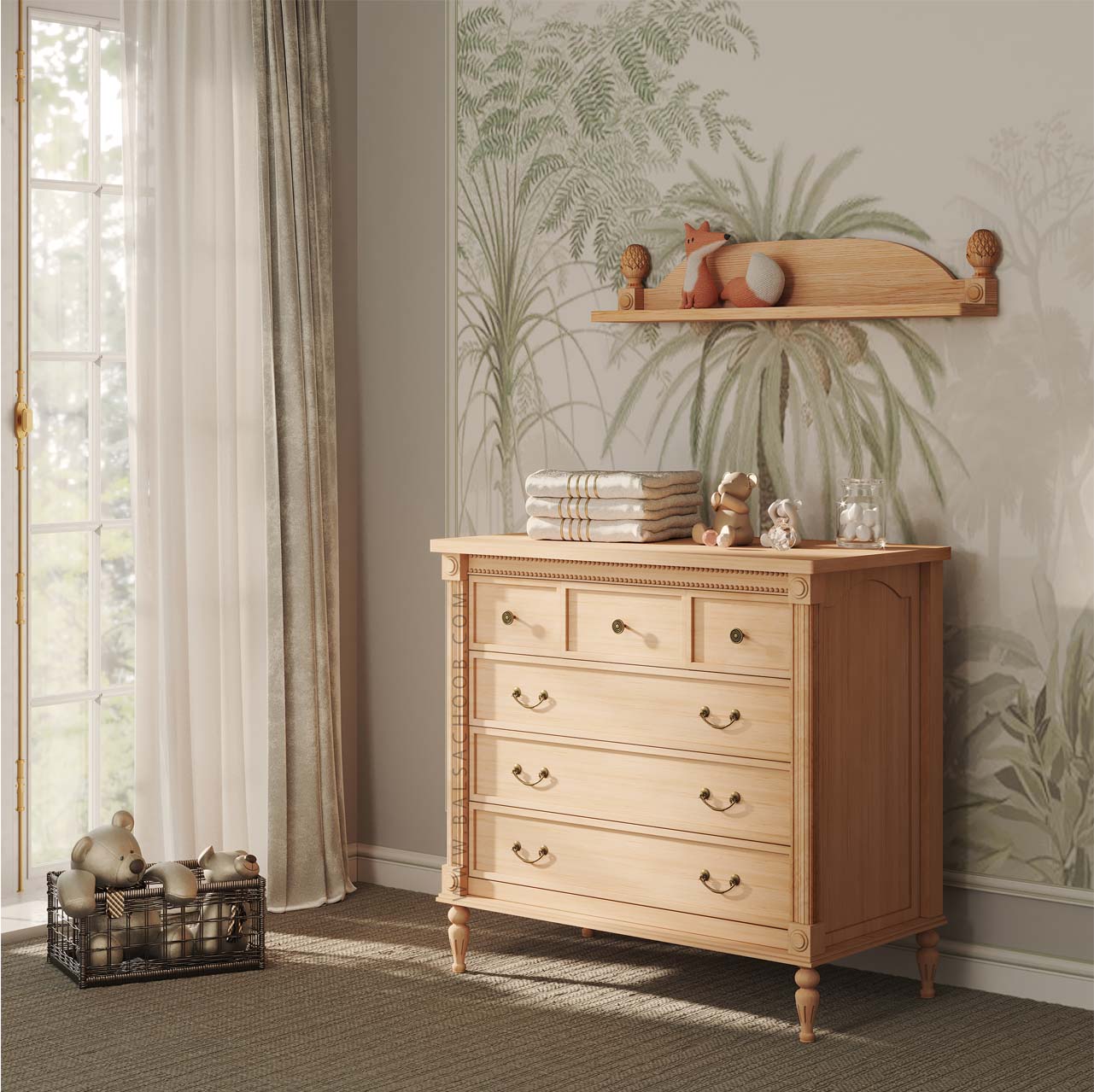 جزئیات دقیق، خطوط صاف و ظاهر مینیمال، سرویس خواب نوزاد لاکچری مدل بلوط را به گزینهای شیک و دلنشین برای افراد سخت پسند تبدیل کرده است.