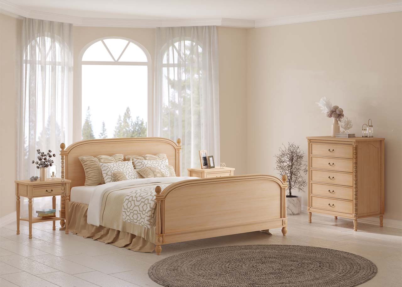 مدل بلوط مجموعهای کامل شامل تخت خواب (تمام چوب یا بالشتکدار)، پاتختی، میز آرایش، دراور لباس، کمد لباس دو درب و سه درب، و آینه قدی است. همچنین تخت خواب این سرویس قابلیت انتخاب با فوت برد یا بدون آن را دارد تا با هر سبک دکوراسیونی هماهنگ شود.