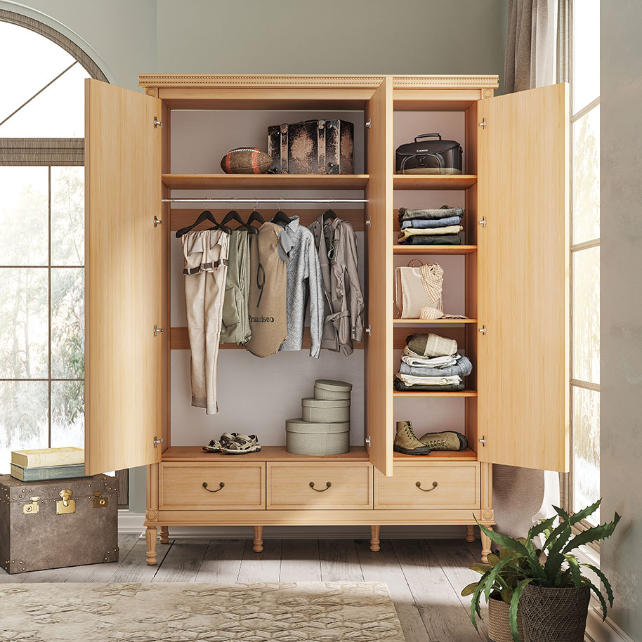 این سرویس خواب جدید شامل تخت خواب، پاتختی، میز آرایش، میز تحریر، کتابخانه، دراور لباس، کمد دو درب و سه درب و آینه قدی است. طراحی مستحکم و با کیفیت چوب راش، تجربهای راحت و تخت خواب طبی برای استراحت طولانی و استفاده روزانه ایجاد میکند.