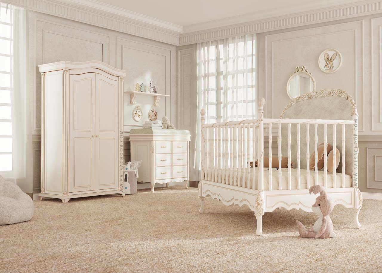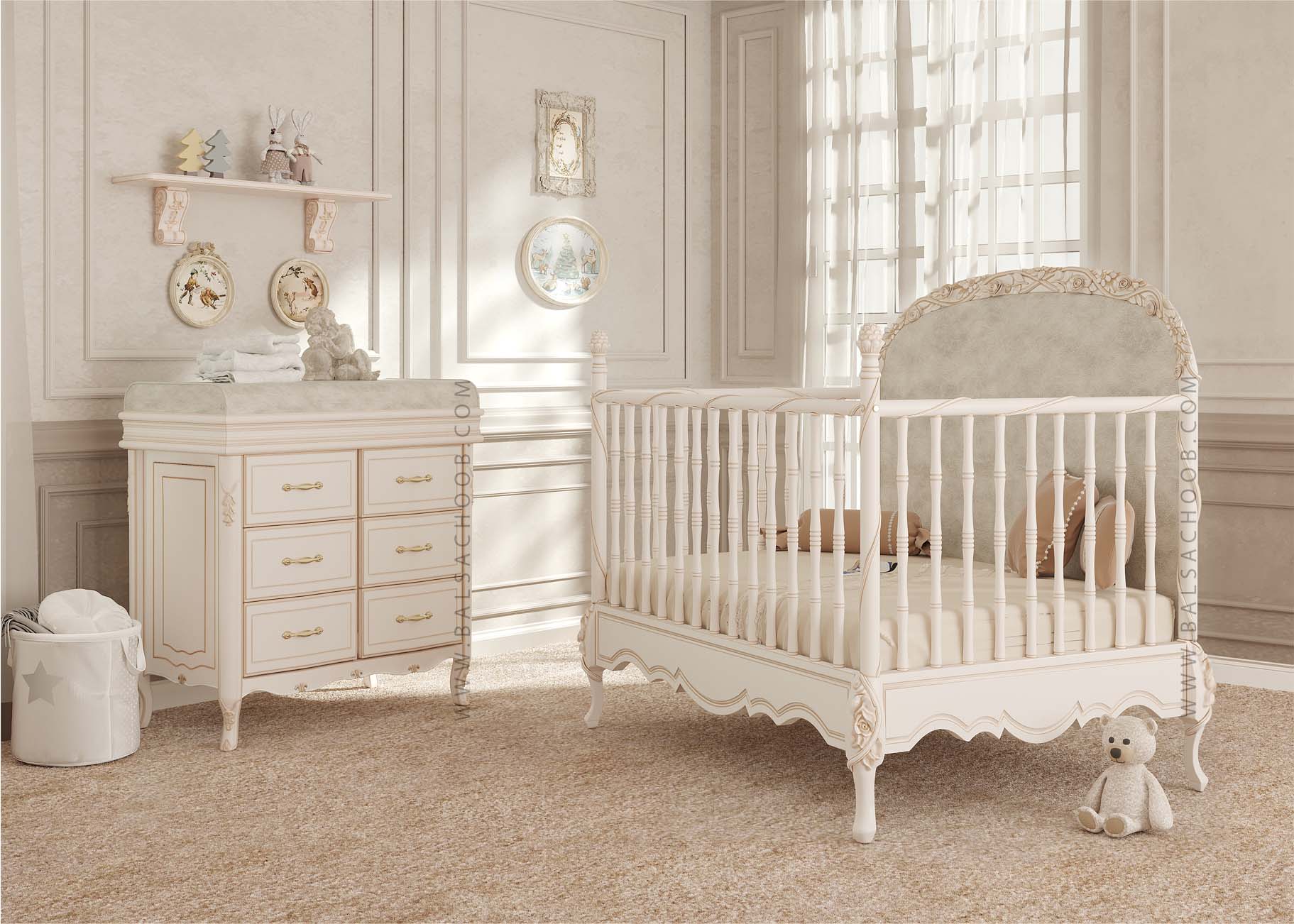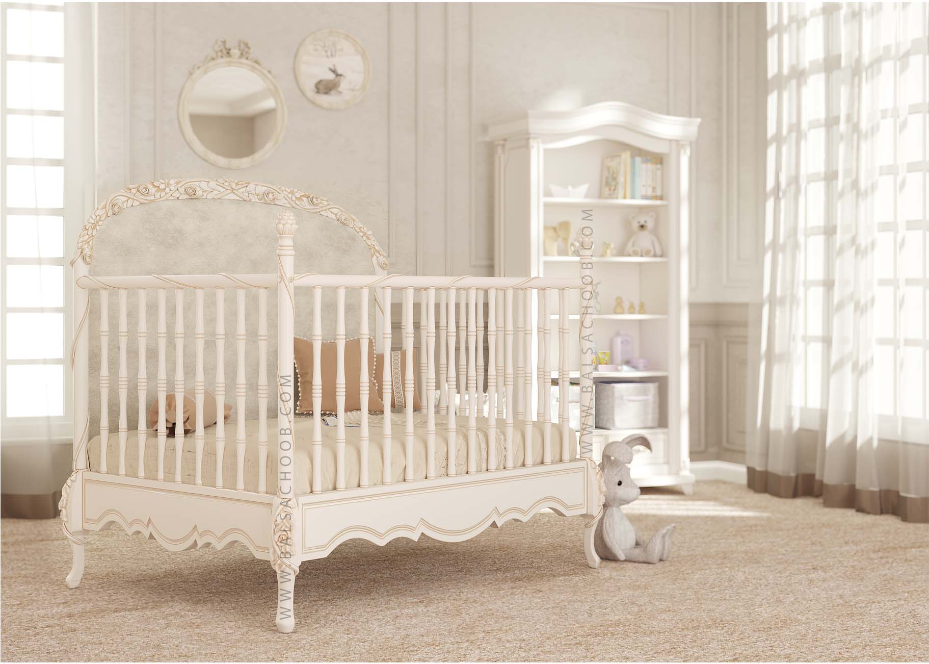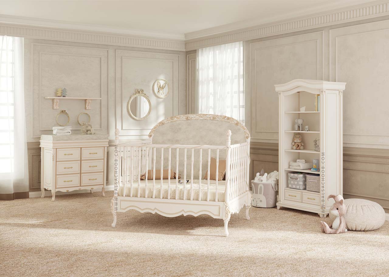 سرویس خواب نوزاد بالسا مدل کاترین | تخت نوزادی نئوکلاسیک با ارتفاع قابل تنظیم