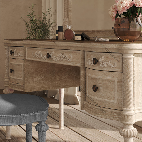 میز آرایش گامورا با طراحی کلاسیک و جزئیات دقیق، جلوهای لوکس و زیبا به اتاق خواب شما میبخشد. این میز از چوب راش گرجستانی طبیعی با کیفیت بالا ساخته شده و تمامی بخشهای آن با دقت و ظرافت طراحی شدهاند تا بهخوبی با فضای هر اتاقی هماهنگ شوند. رنگهای ملایم و خطوط نرم و گرد این میز، فضایی آرامشبخش و دلنشین ایجاد میکنند که علاوه بر زیبایی، راحتی را نیز به همراه دارد.